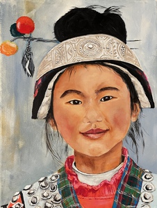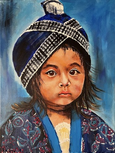 2021Uit mijn serie wereldmeisjes, Luang Prabang Laos A Hmong Acrylschilderij op canvas 30x40 cm