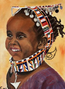 2021Uit mijn serie wereldmeisjes, Kenia Acrylschilderij op canvas 30x40 cm