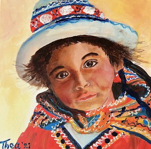 2021Uit mijn serie wereldmeisjes, Peruaans meisje, acrylschilderij 30x30 cm op canvas