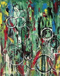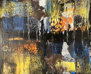 2018In the rain, abstact gemengde techniek acryl op canvas 50x40 cm