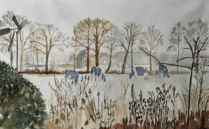 2003Koeien in de wei, aquarel met passe-partout in de maat 60x50 cm